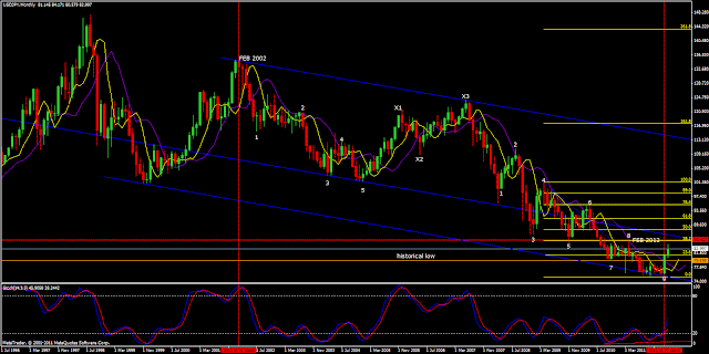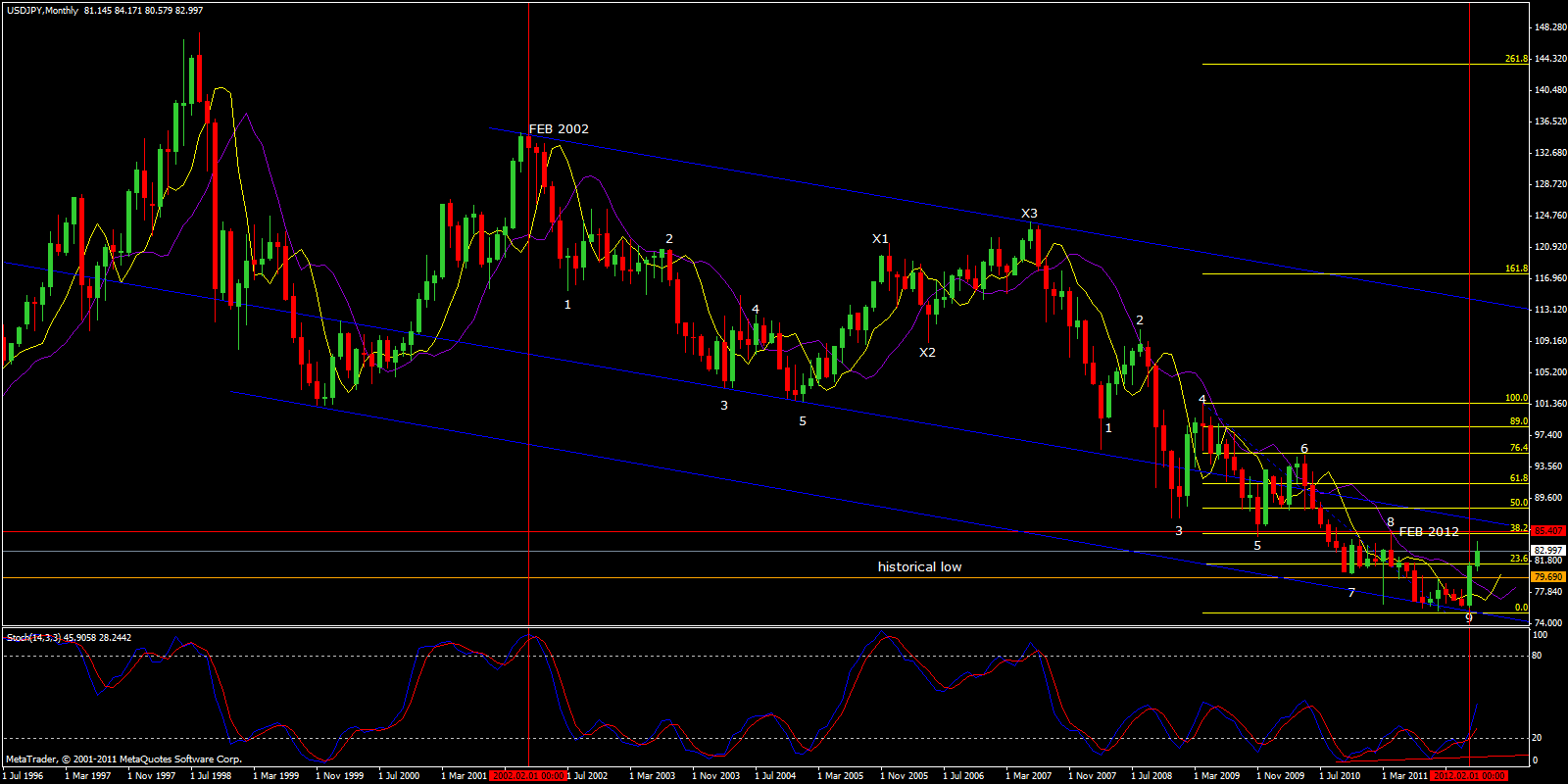 This is part of a long process. as you can see by the monthly chart below, the USDYEN completed a 120 month cycle (10years), from Feb 2002 to Feb 2012. This new phase might take it back to 101.