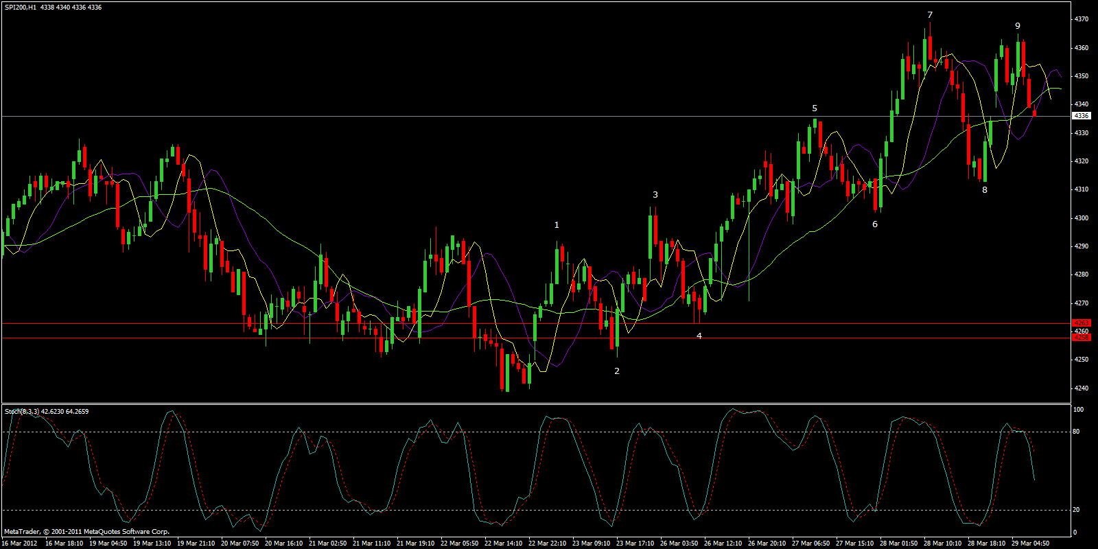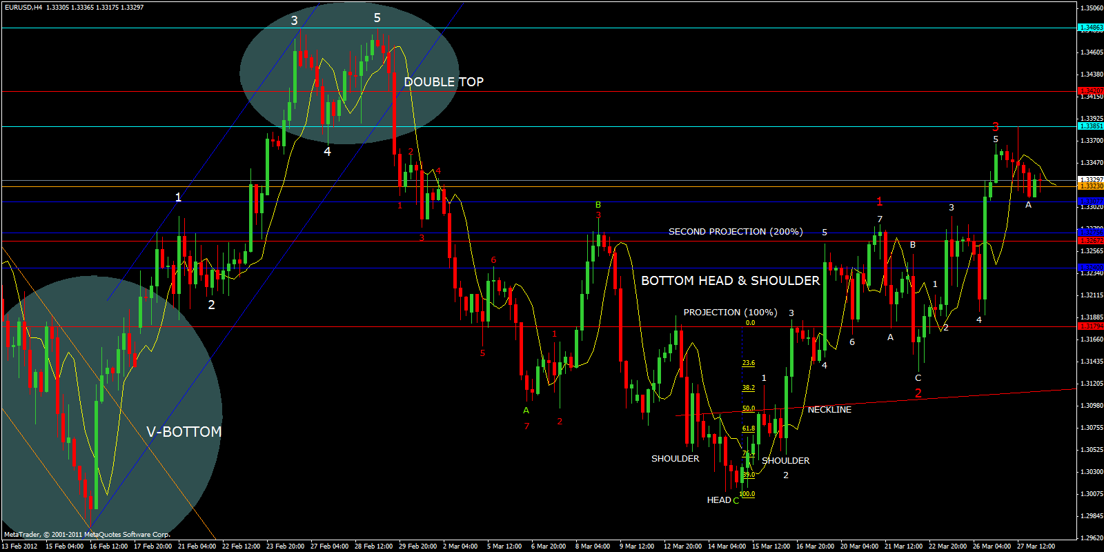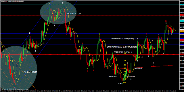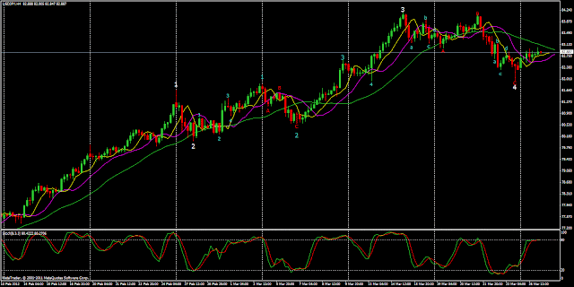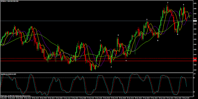 Finally, the 1H CHART below shows clearly all 9 waves up, plus a double top. Also, just under the number 9, there is a reversal engulfing candlestick pattern.