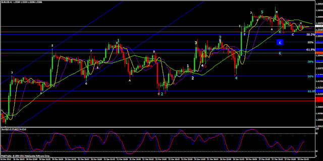 The 1h chart below shows our wave count more in detail. Given the major confluence (K), the new set of 5 waves down should fetch 1.3280. Also, other lower confluences are can be attained.