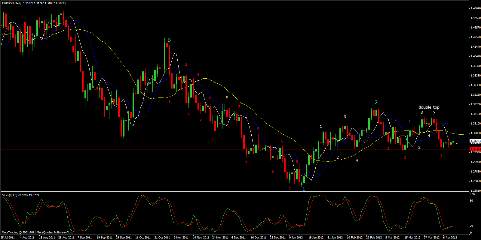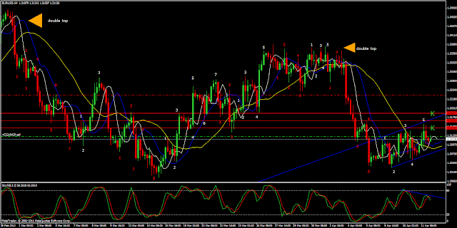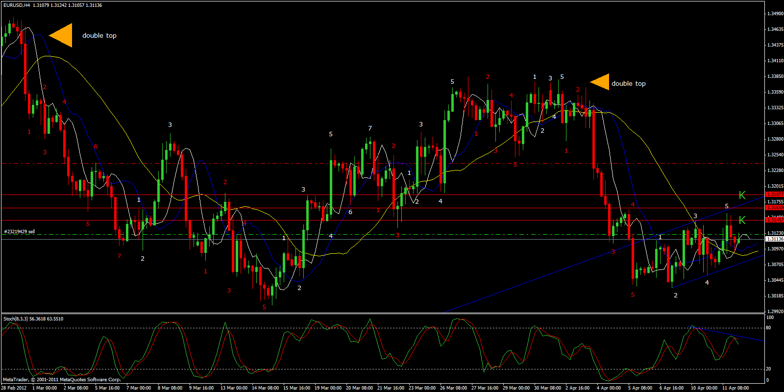 The 5 wave retracement up in the 4hour chart below almost touched the 38% around 1.316. Stochastic in bearish divergence