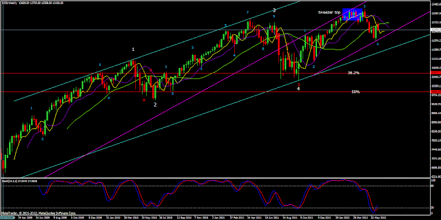 And so does the DJ30 in the weekly chart below. This index too is set to complete the (very last) 5th wave up within the 5th wave of major grade