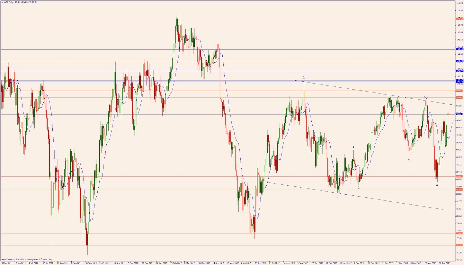 This wave was followed by a two-step-pattern (1up-2dwn-3up). See point "53" at the top of the chart.