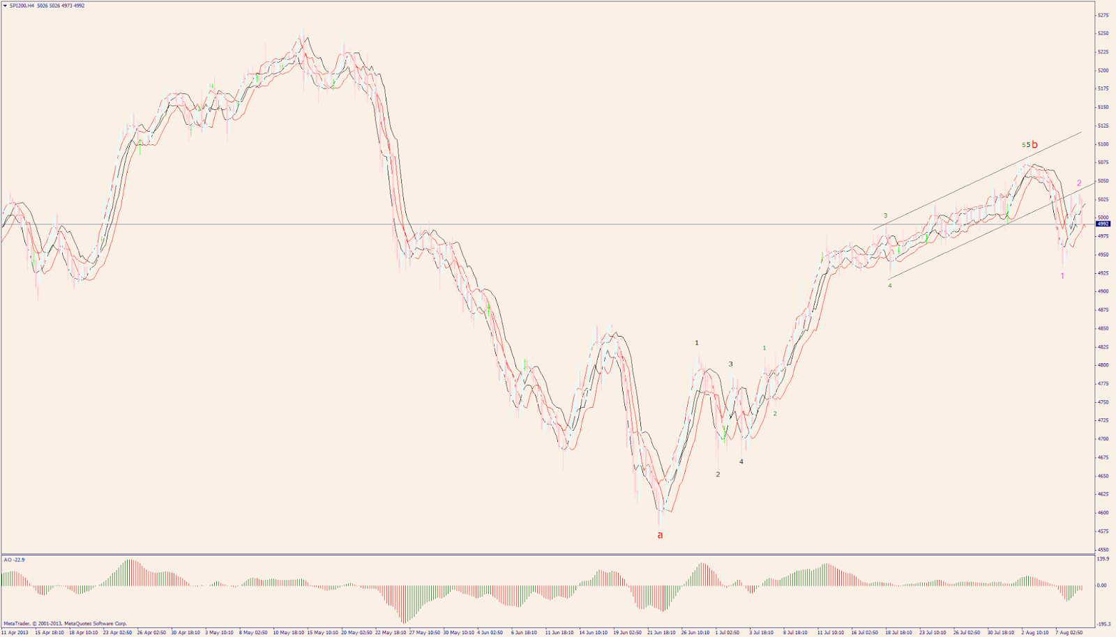 wave oscillator over 4-hour chart - click to enlarge