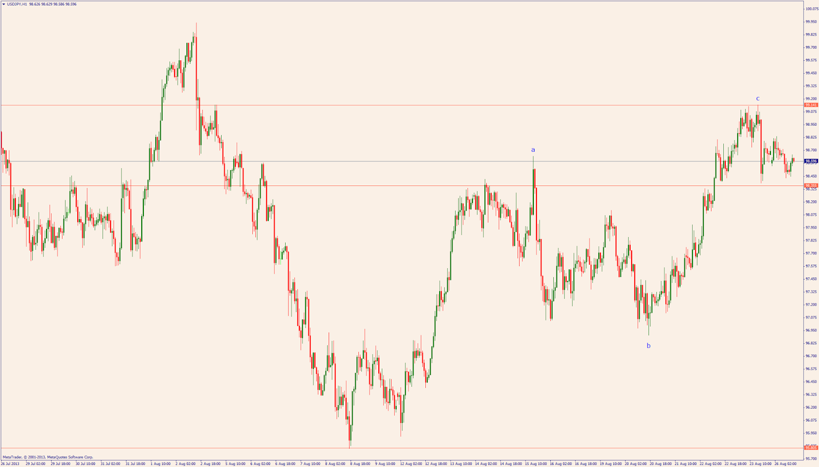 wave oscillator over 1-hour chart - click to enlarge