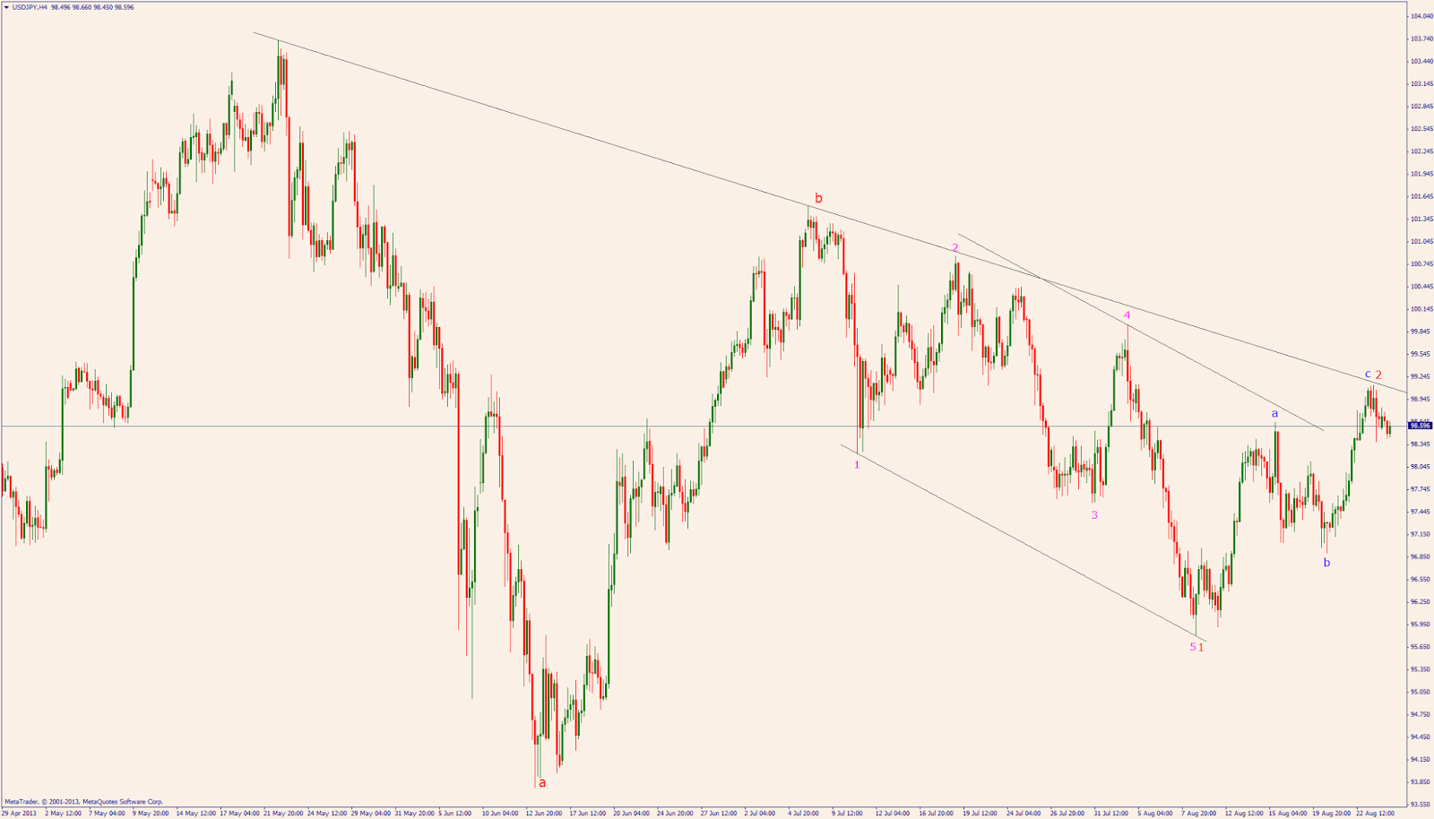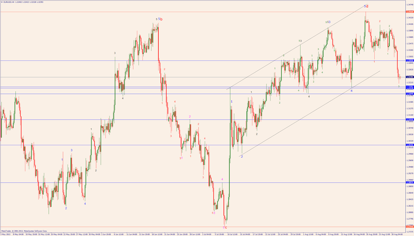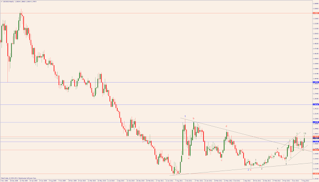 The Euro stared "wave e" (daily chart) that should take it to 1.27 or lower.