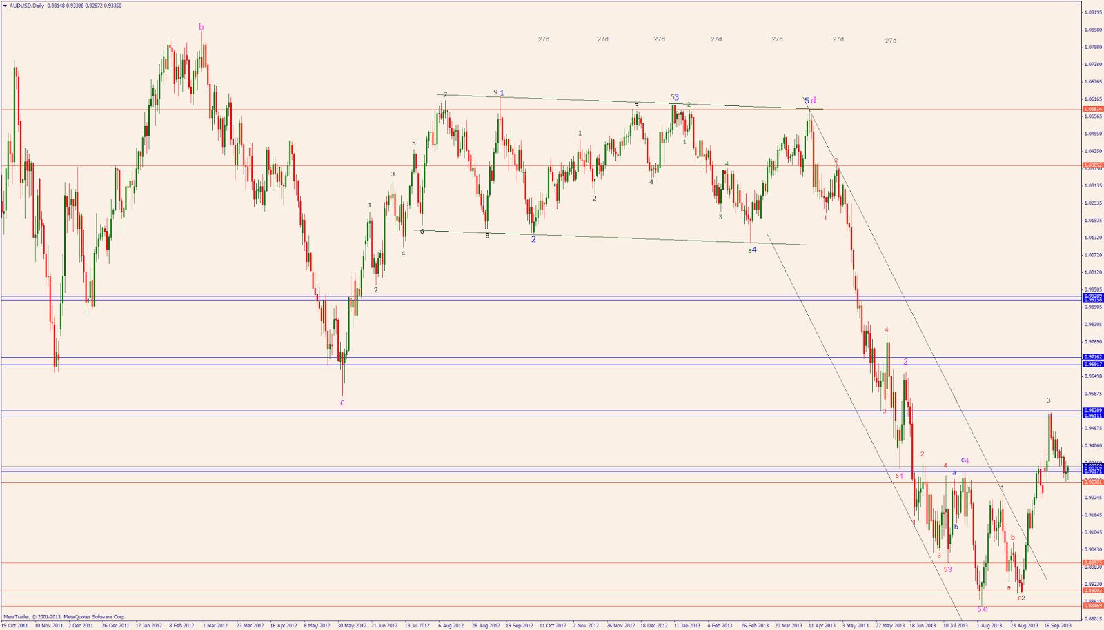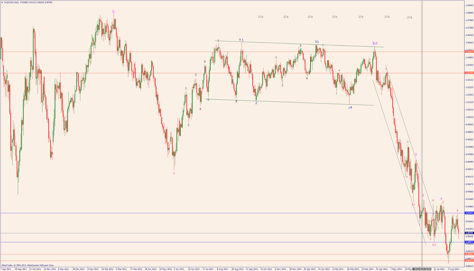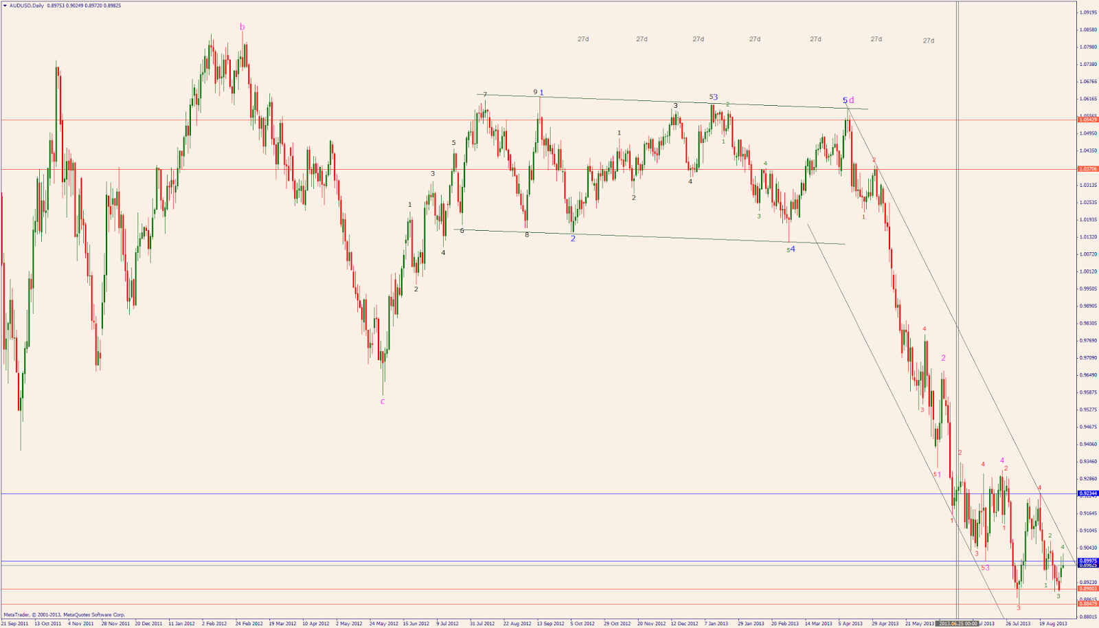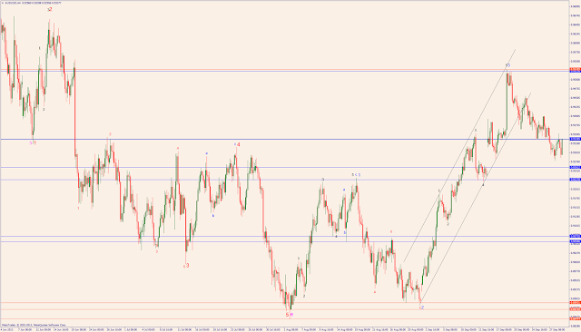 The daily chart displays a nice a-b-c followed by waves 1. Wave 2 (downwards) might finish soon.
