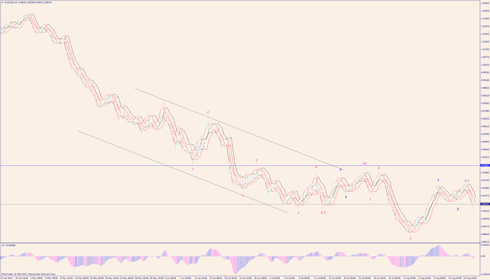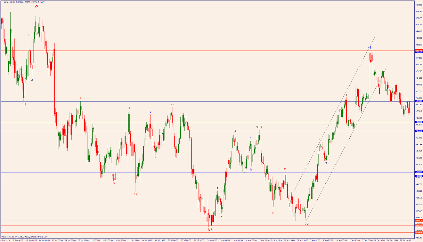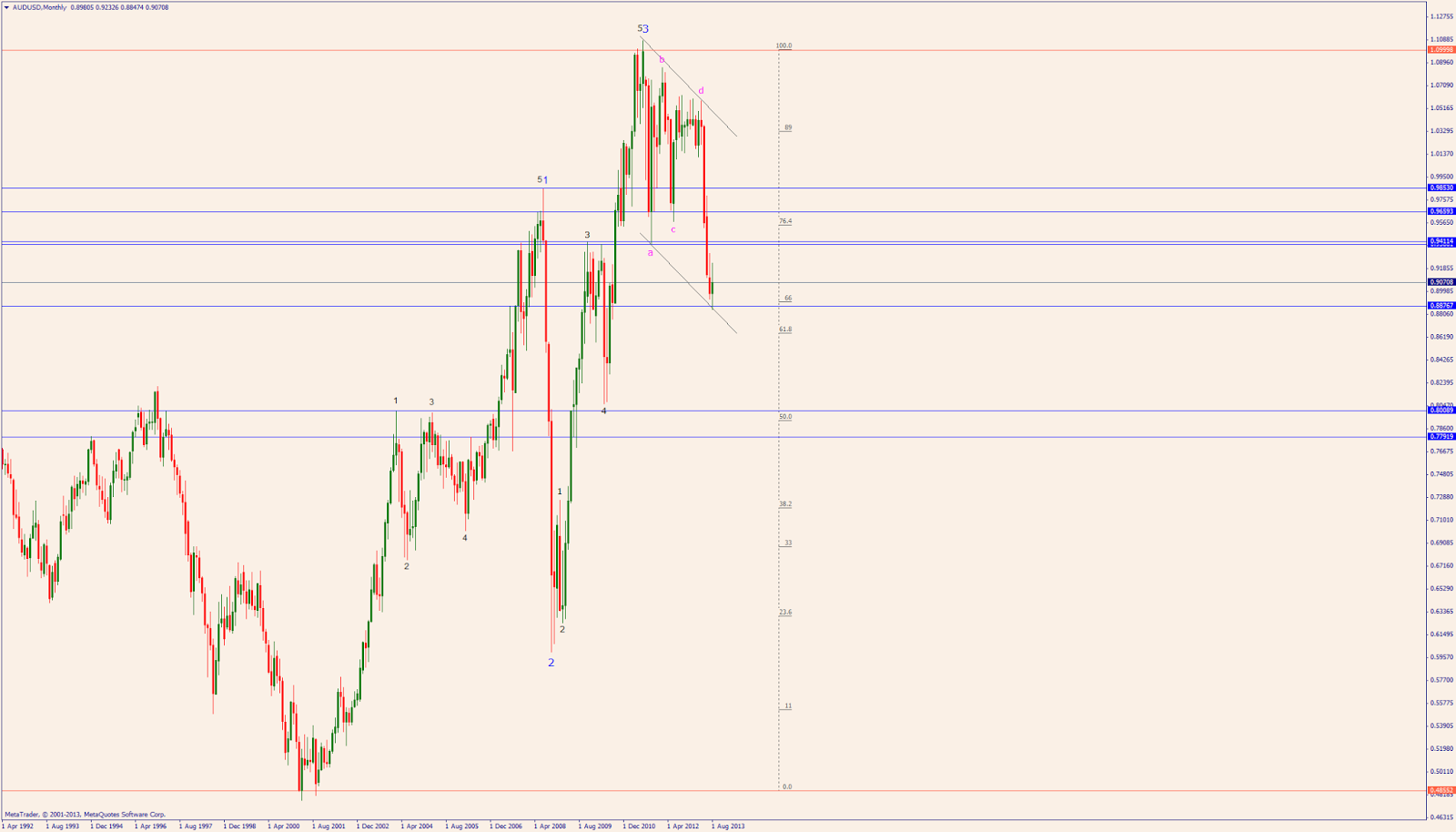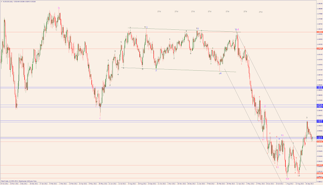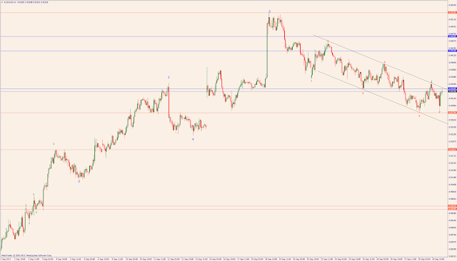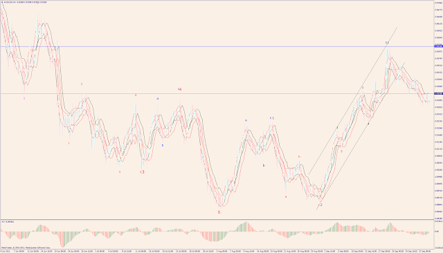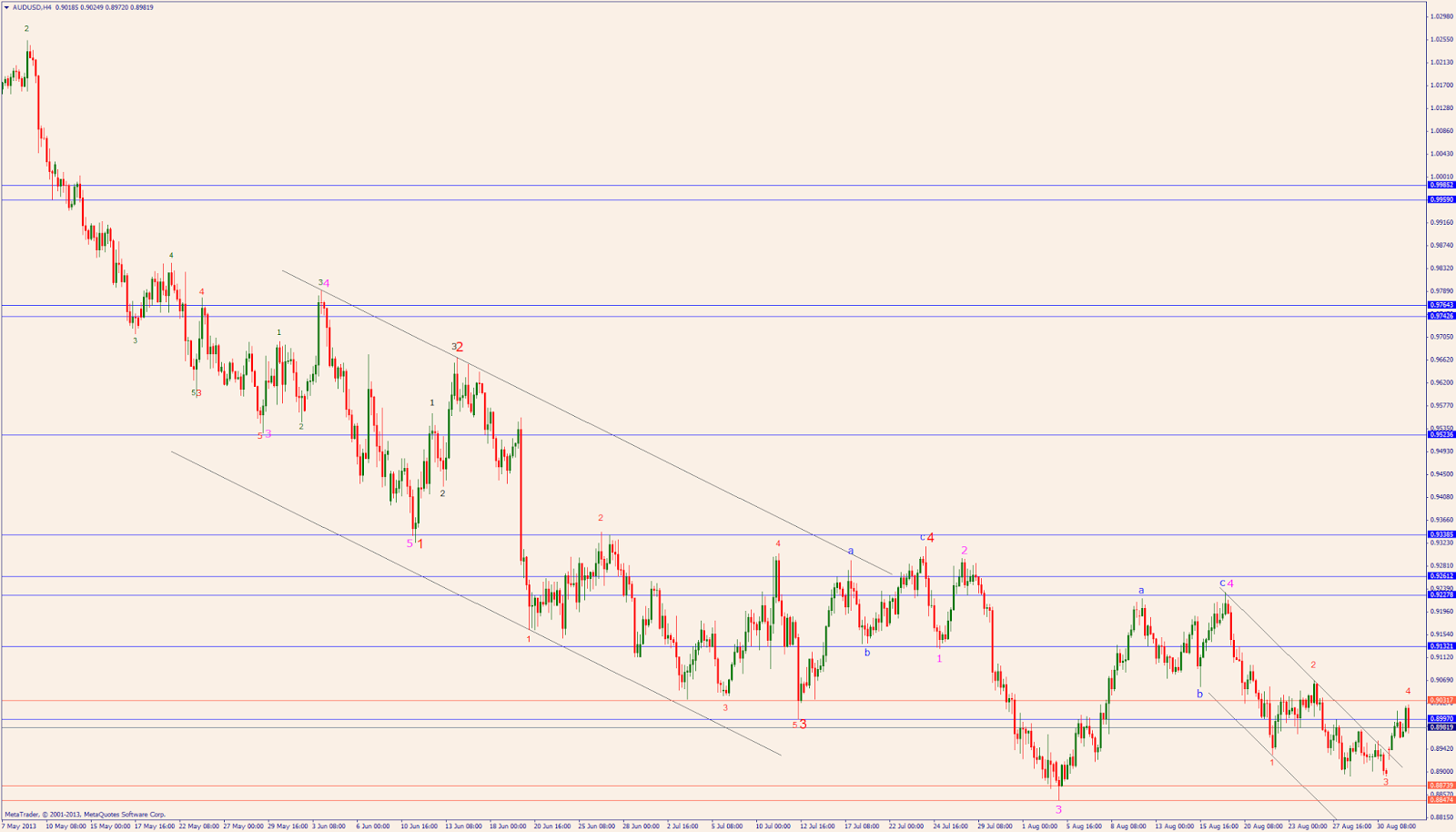 The daily chart displays a nice a-b-c followed by waves 1. Wave 2 (downwards) might finish soon.