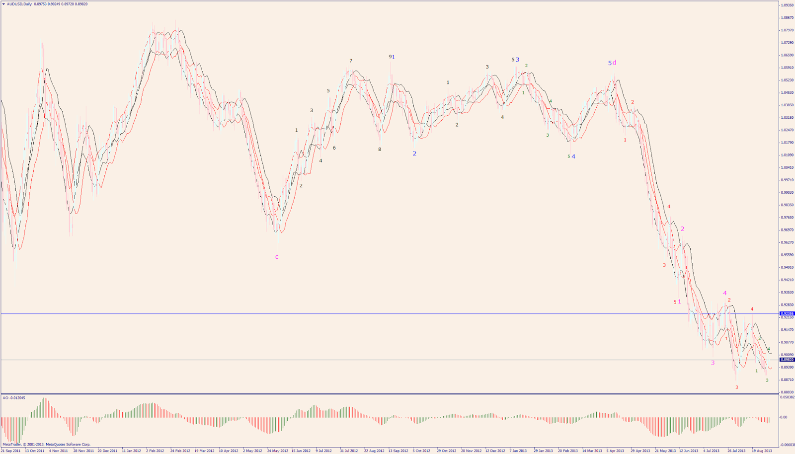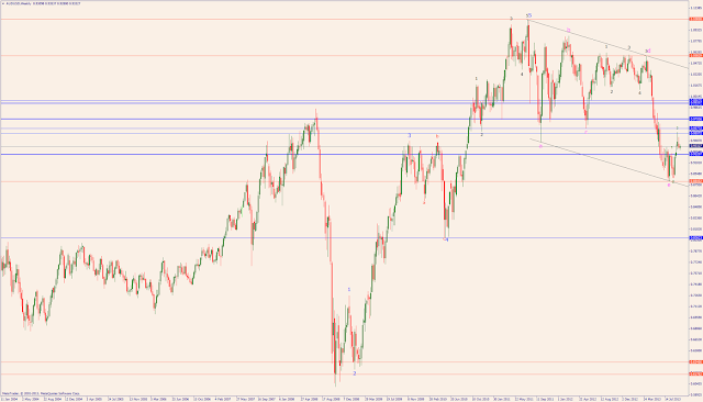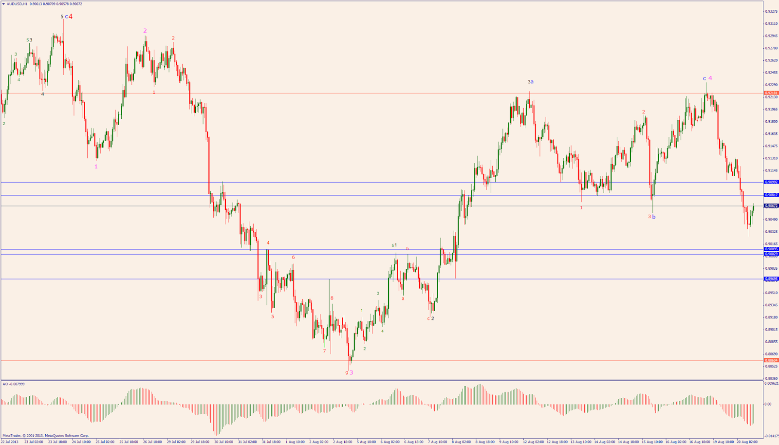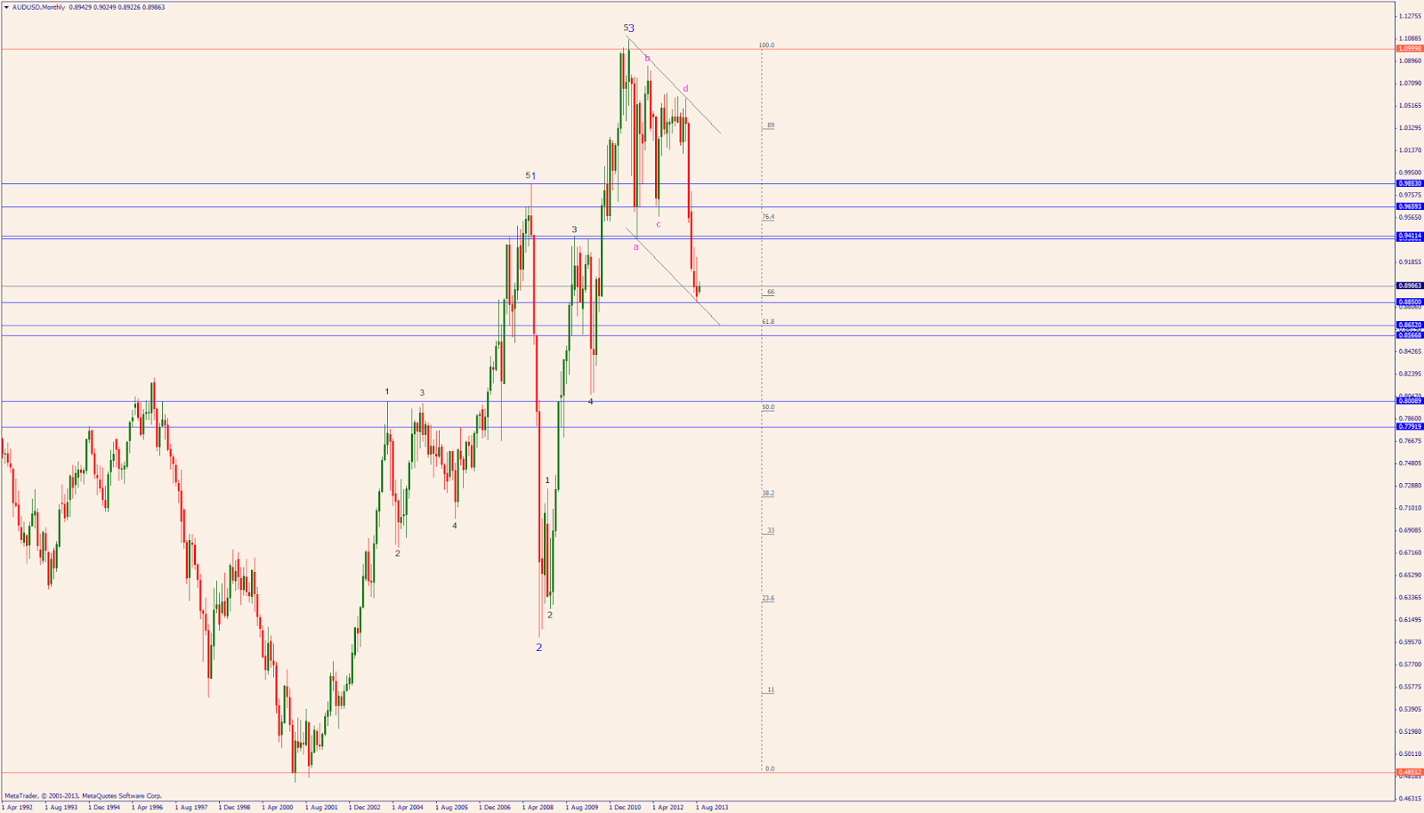 The daily chart displays a nice a-b-c followed by waves 1. Wave 2 (downwards) might finish soon.
