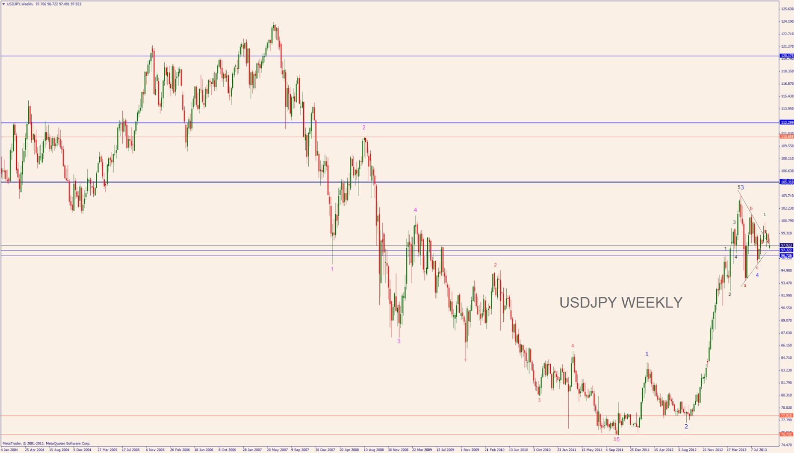 USDJPY, now at 97.88, might complete the downtrend soon by reaching the final target at 97.43 and possibly the area 97.049-96.820 (4-hour chart). Then the uptrend should resume to take it to 105 and 112.