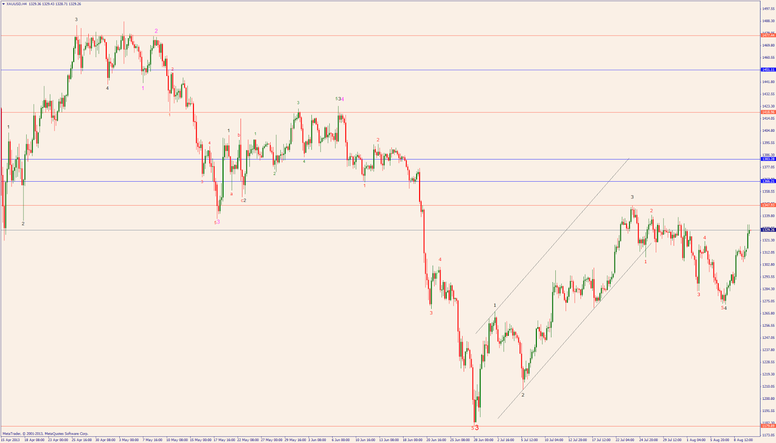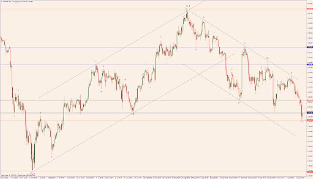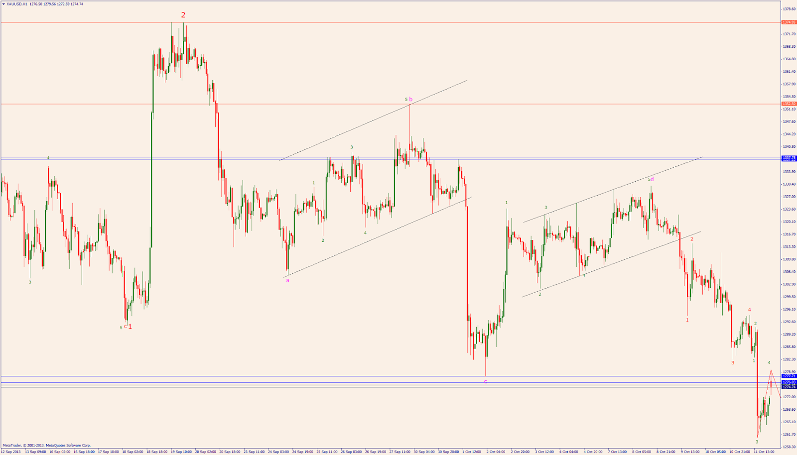 In the 1-hour chart Gold is supposed to make another minor attempt to touch the low at 1261 or slightly lower as it didn't performed all 5 little ripples downwards yet (in the 1-hour chart). This could happen at the opening or few hours after the opening.
