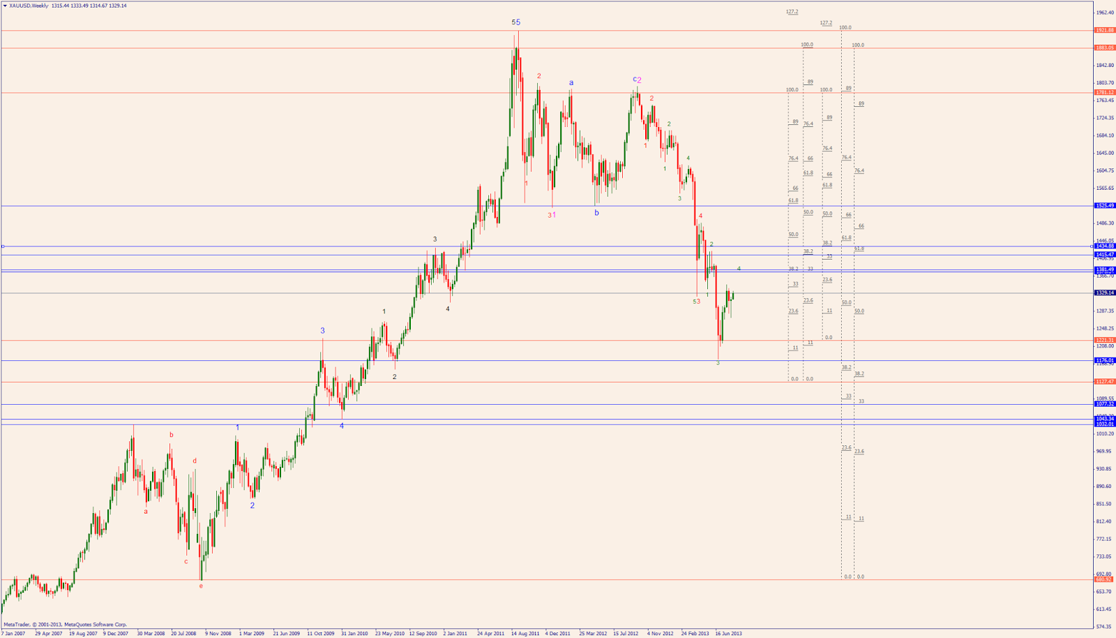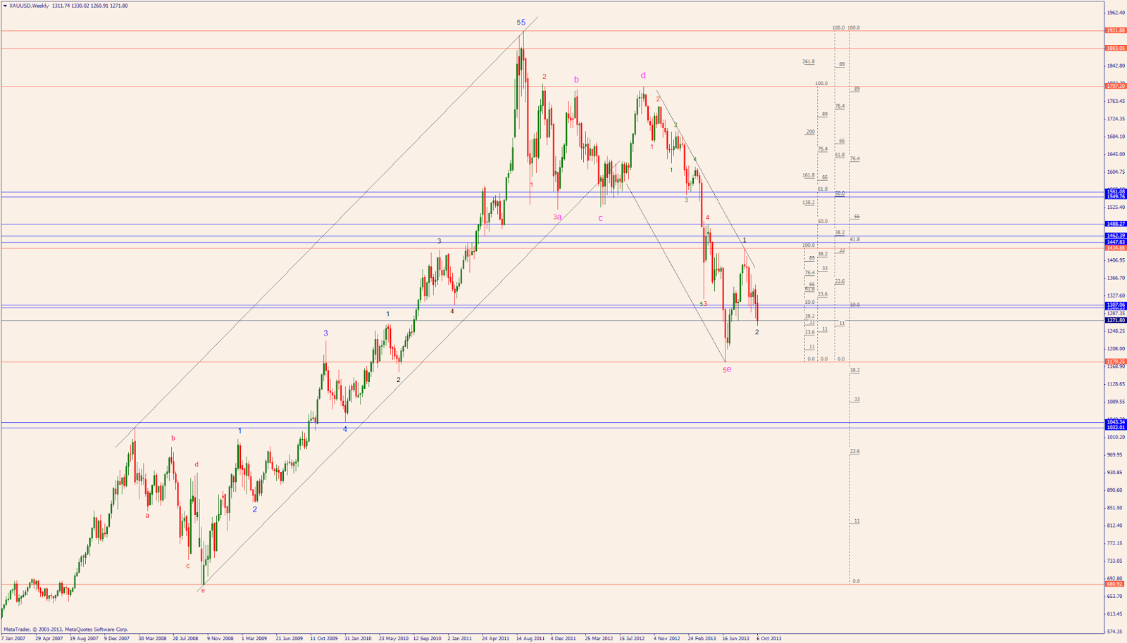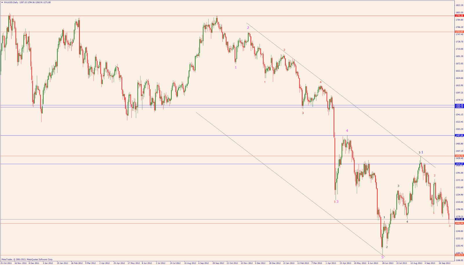 With the low around 1261 and a close around 1271-72, GOLD performed a 66% retracement of impulse wave 1 (daily chart). This retracement is displayed in the daily chart as wave 2.