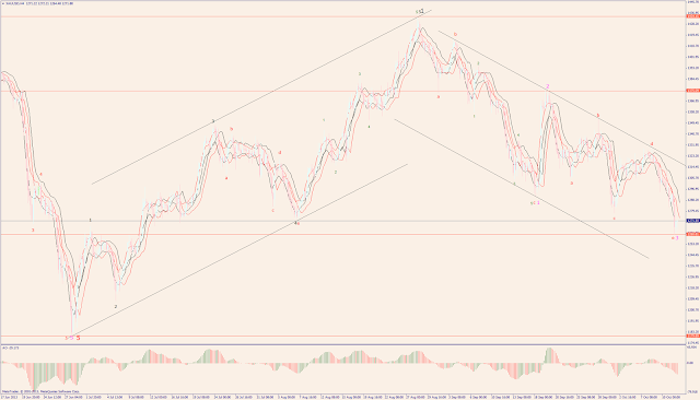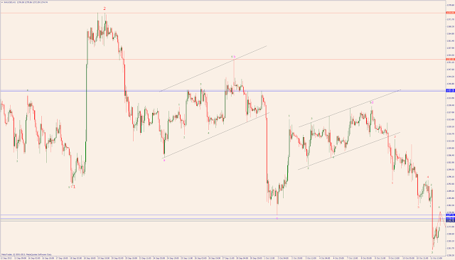 GOLD did exactly what I predicted on Oct 12 and completed an a-b-c retracement. It's now supposed to start a new uptrend. This is confirmed by the 4 red candles in the daily chart, which is usually a reliable reversing pattern.